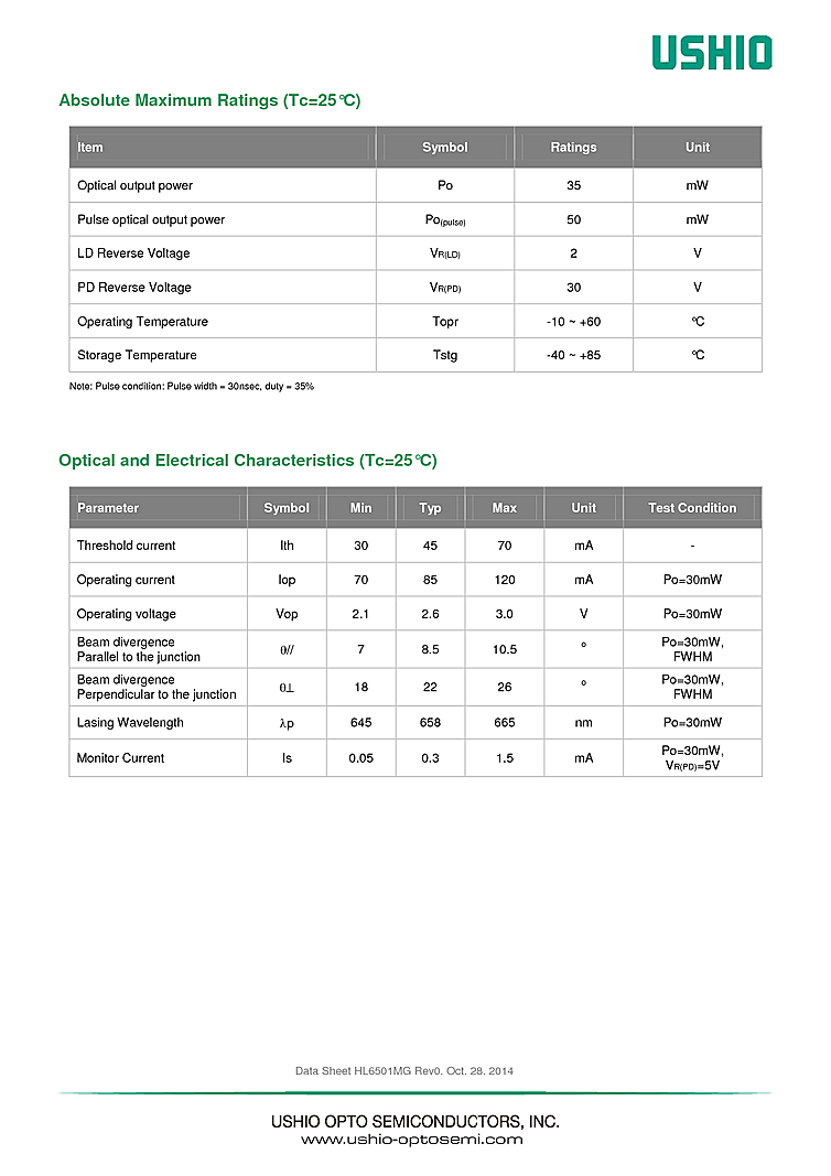 波長: 658nm-658nm 出力: 35mW-35mW パッケージ: TO-Can