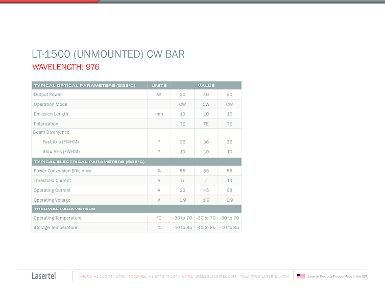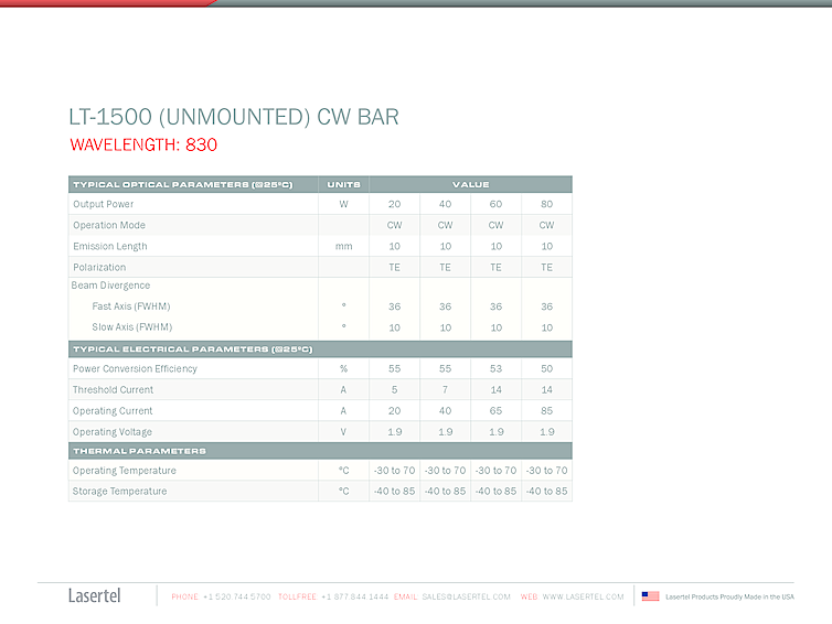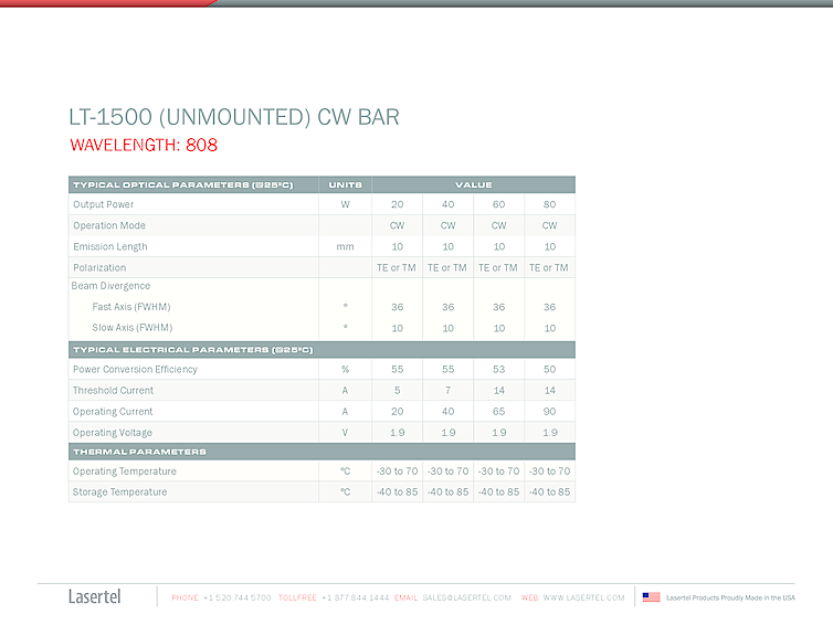 波長: 808nm-976nm 出力: 80W-80W パッケージ: cleaved bar テクノロジー: cleaved laser bar, CW