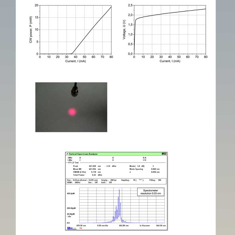 These 658nm laser diode modules are fiber coupled and operate in CW mode with optical power up to 10 mW. Key features include small size and weight to allow for installing onto a PCB without additional mounting. These modules provides a Gaussian beam with the field diameter 4.2 μm (fiber type SM04) or 4.5 μm (fiber type