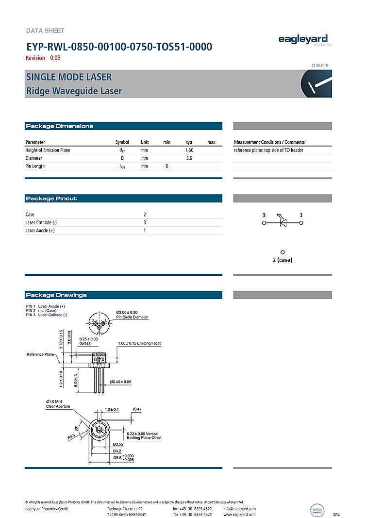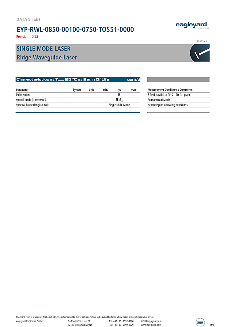 型番: メーカー:eagleyard Photonics GmbH 商品コード:L000778