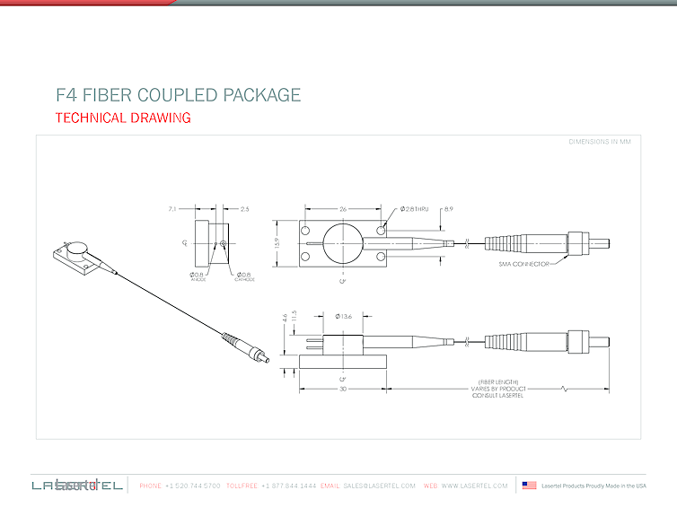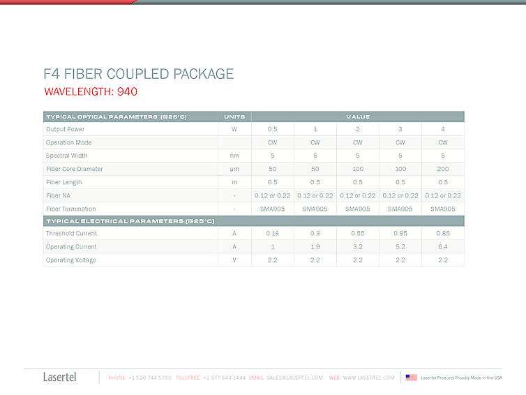 波長: 808nm-976nm 出力: 4W-4W パッケージ: fiber coupled laser module, F4 テクノロジー: high power single emitter