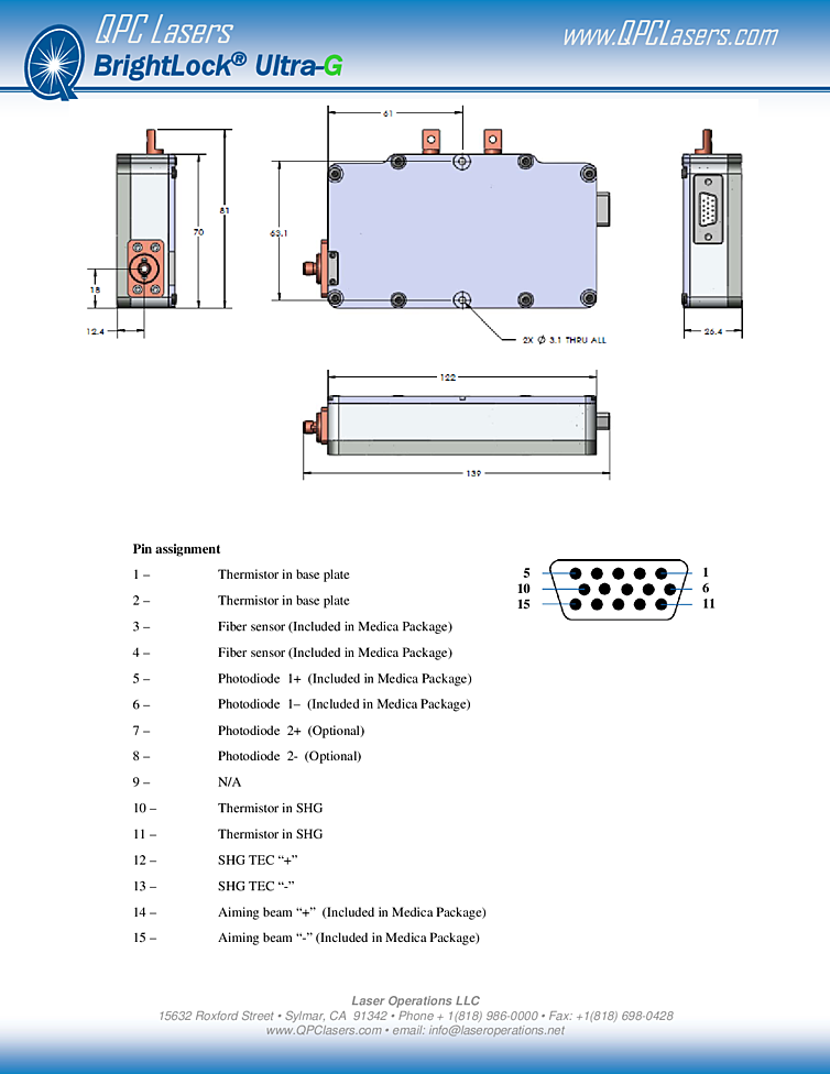 532nm BrightLock® Ultra-G from QPC Lasers: Features up to 6W at 532 nm from this green laser diode, collimated or fiber-coupled, on-chip wavelength-stabilized BrightLock™ laser diodes, compact OEM driver and passive air-cooled solutions available, smart medical features (MEDICA package).