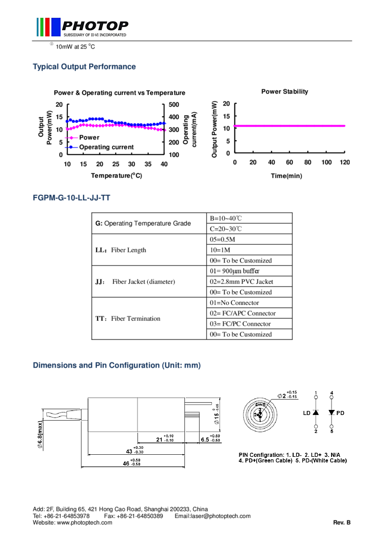 532nm Green laser diode from Photop. Fiber coupled output with 10mW of power. Applications: Laser Alignment, Raman Spectrometer, Biomedical Instrumentation, Digital Printing. Key Features: Mini Size, High Reliability, High Stability, High Polarization Extinction Ratio. Wavelength of the laser diode is 532nm.