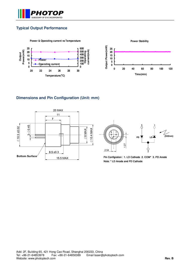 532nm Applications for the green laser diode include Laser Display, Laser Alignment & Pointing. Key Features: Mini Size, Low Cost, Auto Power Control Function, High Reliability. TO-can package with integrated photo diode.