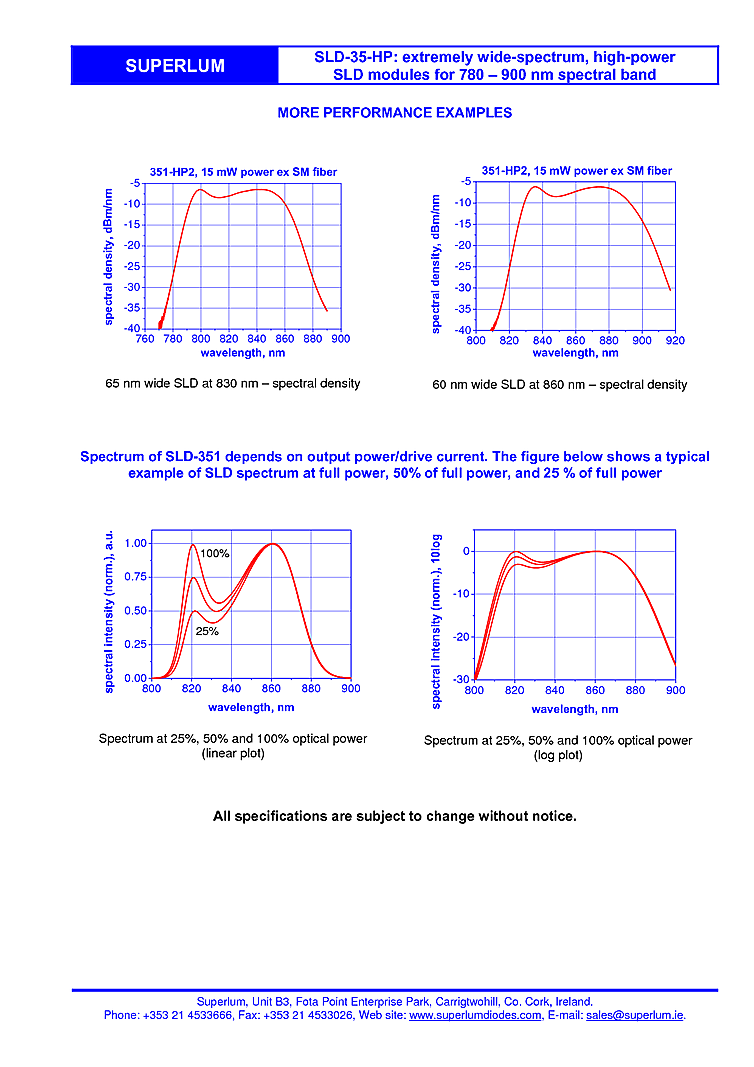 波長: 830nm-830nm 出力: 50mW-50mW パッケージ: Butterfly, DIL, TO-can テクノロジー: SLED