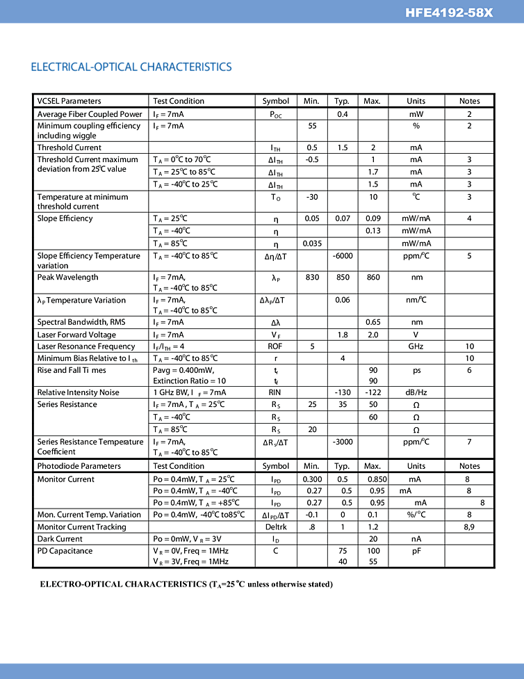 波長: 850nm-850nm 出力: 1mW-1mW パッケージ: TOSA テクノロジー: VCSEL, 4.25Gbps