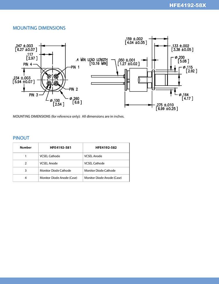 850nm 1mW TOSA VCSEL, 4.25Gbps