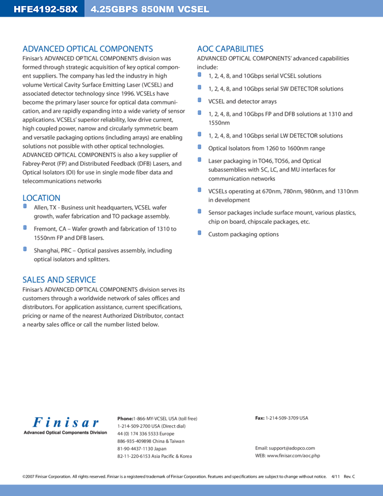 型番: メーカー:Finisar Corporation 商品コード:L000934